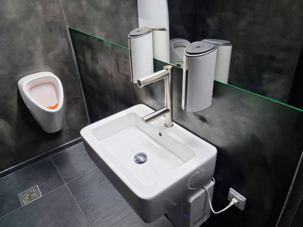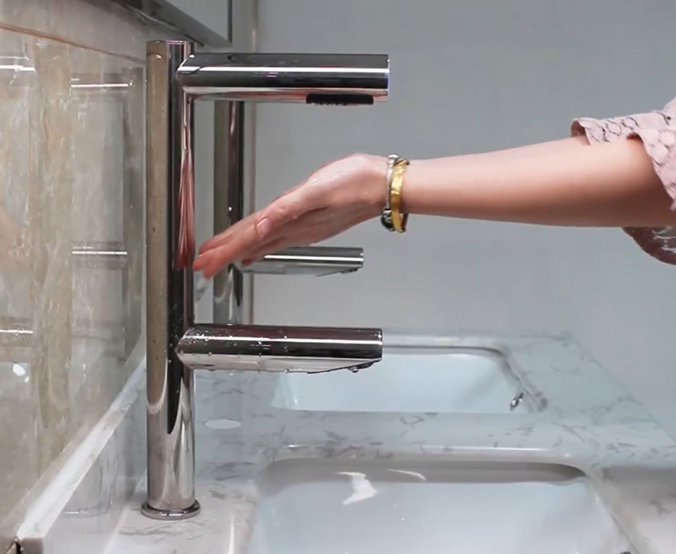 Hygienické umytie a osušenie rúk nebolo nikdy jednoduchšie. Vložením rúk pod vodovodnú batériu začne automaticky tiecť voda s vopred nastavenou teplotou. Hneď nad automatickou batériou sa nachádza vyústenie trysky sušiča. Spustenie je tiež bezkontaktné, stačí vsunúť ruky a pohybovať s nimi podobne ako pri umývaní. Na prednej časti ramena sušiča sa nachádza podsvietený krúžok. Krúžok pulzuje bielym svetlom, čím upozorňuje na funkciu sušiča. Pri používaní svieti modro.