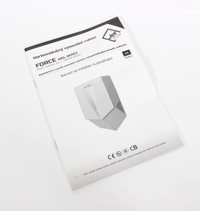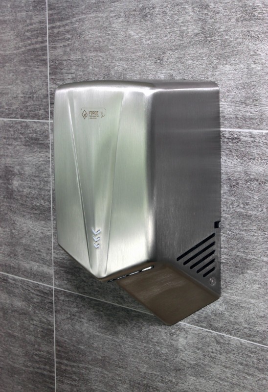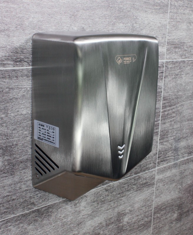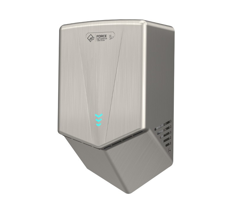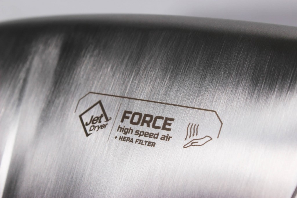 Jet Dryer FORCE je k dispozícii vo variante s kartáčovaným nerezovým povrchom alebo odolným bielym alebo čiernym ABS plastom. Je tak vhodný aj do prostredia, kde je zvýšené riziko vandalizmu alebo hrubšieho zaobchádzania. Kryt z nerezovej ocele triedy 304 zaručuje dlhú životnosť a jednoduchú údržbu.