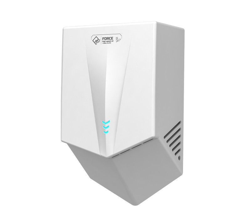 Jet Dryer FORCE je výkonný sušič rúk navrhnutý pre miesta s vysokou frekvenciou návštevníkov, kde je dôležitá rýchlosť, spoľahlivosť a odolnosť. Tento model v sebe kombinuje silný motor, robustnú konštrukciu a moderný design. Vďaka tomu sa skvele hodí do verejných priestorov, komerčných objektov, kancelárskych budov aj gastronomických prevádzok.