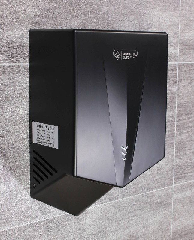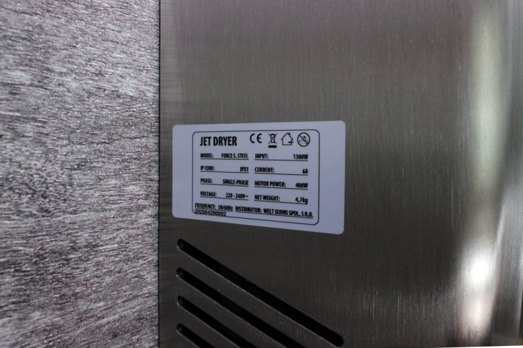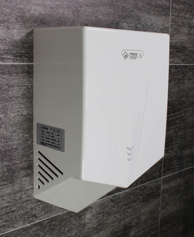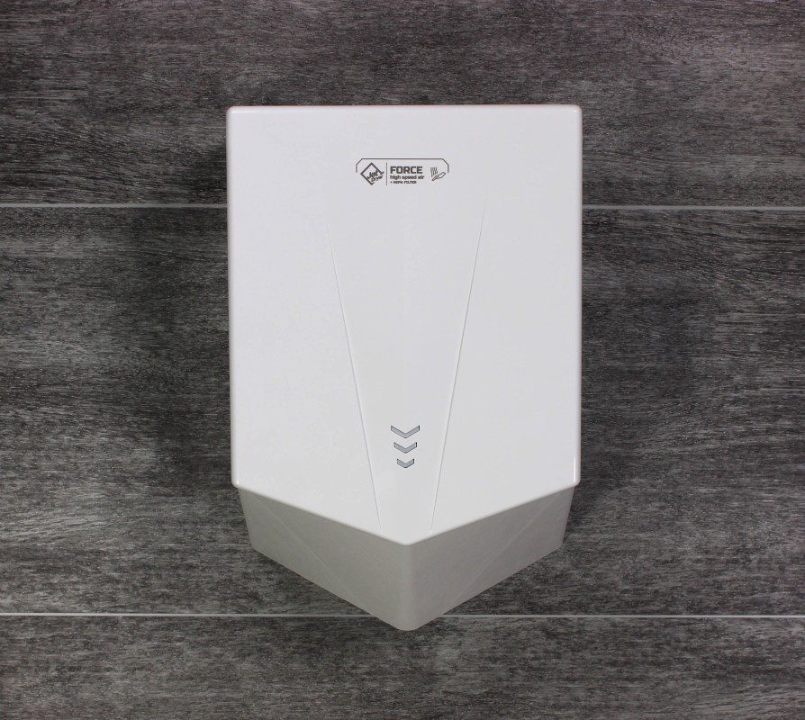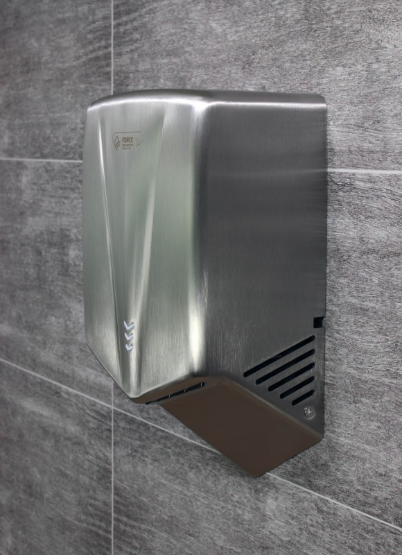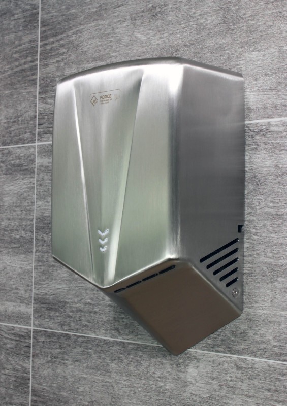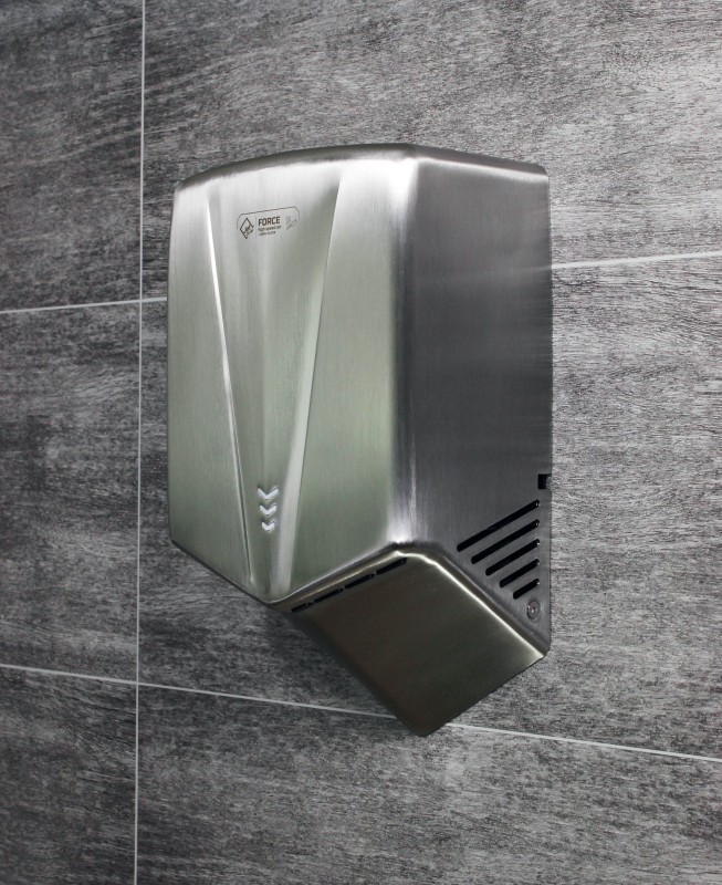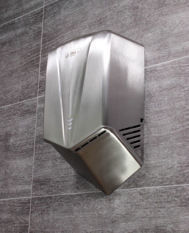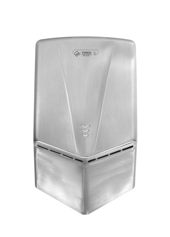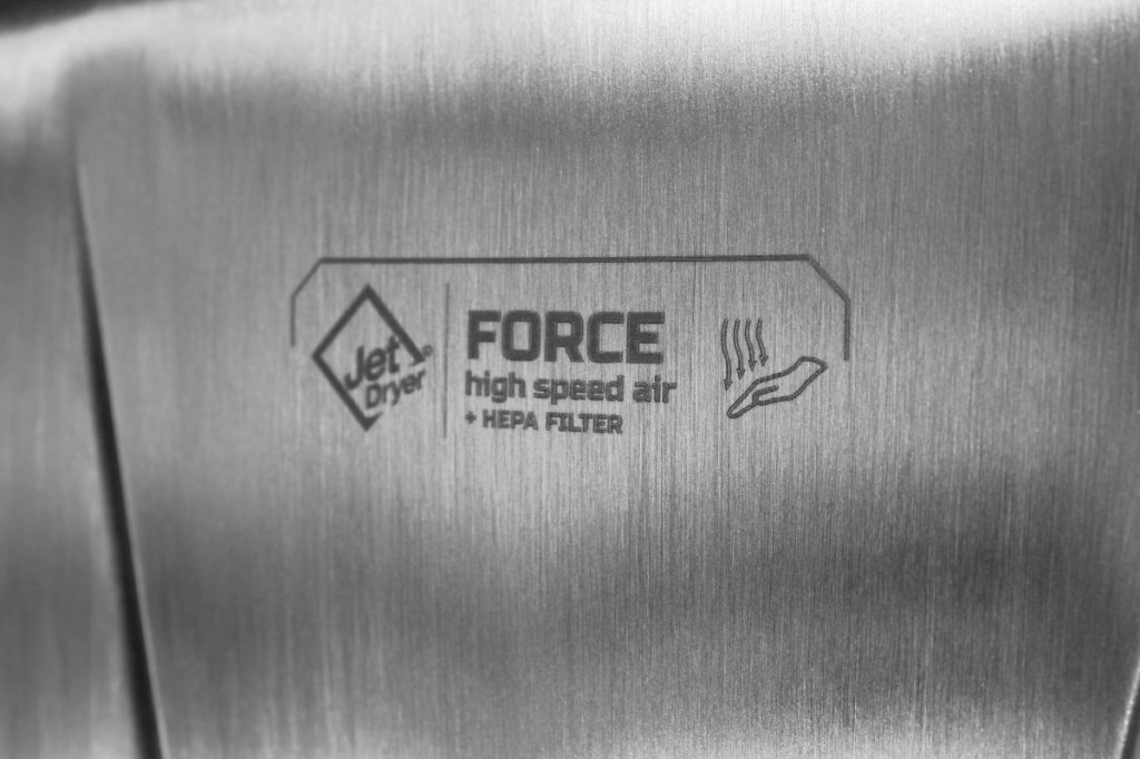Jet Dryer FORCE je k dispozícii vo variante s kartáčovaným nerezovým povrchom alebo odolným bielym alebo čiernym ABS plastom. Je tak vhodný aj do prostredia, kde je zvýšené riziko vandalizmu alebo hrubšieho zaobchádzania. Kryt z nerezovej ocele triedy 304 zaručuje dlhú životnosť a jednoduchú údržbu.