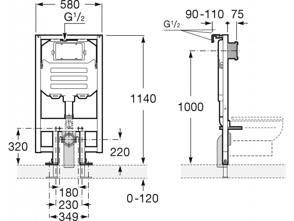 Jika WC systém compact pre závesné klozety so samonosným oceľovým rámom s montážnou hĺbkou od 8cm.