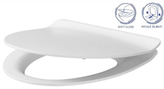 WC sedátko tenký SLIM, s pomalým zatváraním SOFT CLOSE, s jednoduchým odobratím a upevnením sedátka pomocou jedného tlačidla EASY OFF ONE BUTTON.