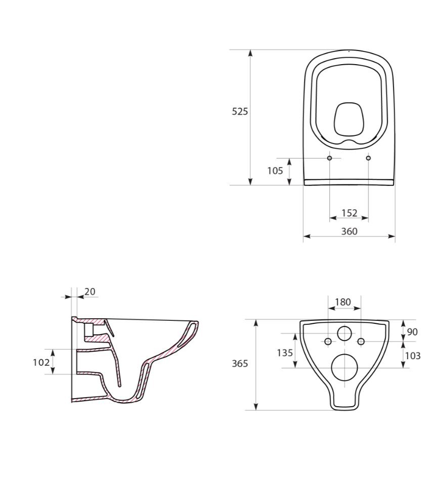 WC závesná misa COLOUR NEW CleanOn elegantného vzhľadu s horizontálnym odpadom, funkciou splachovanie 2/4, 2,5 / 5, 3 / 5l.