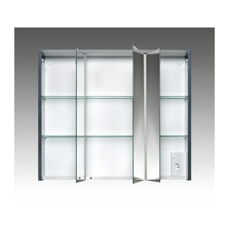 Vybavenie: 3 krištáľové sklenené zrkadlové dvere s 3D zrkadlovým efektom, nastaviteľné sklenené poličky, bezpečnostná zásuvka a vypínač