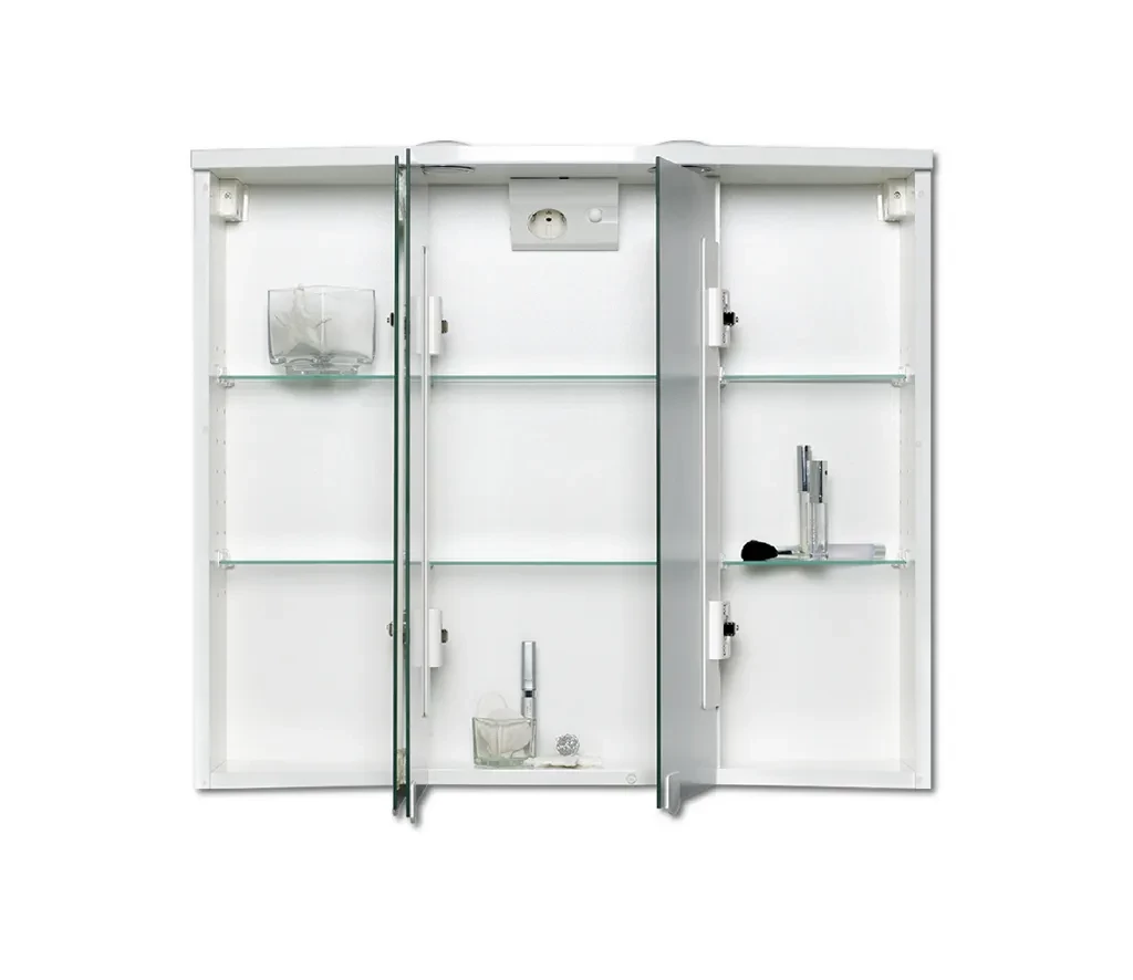Vybavenie: 3 krištáľové sklenené zrkadlové dvere s 3D zrkadlovým efektom, nastaviteľné sklenené poličky, bezpečnostné zásuvka