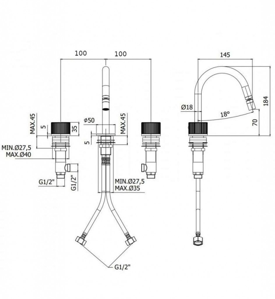Stojanková bidetová batéria, bez odtokovej súpravy