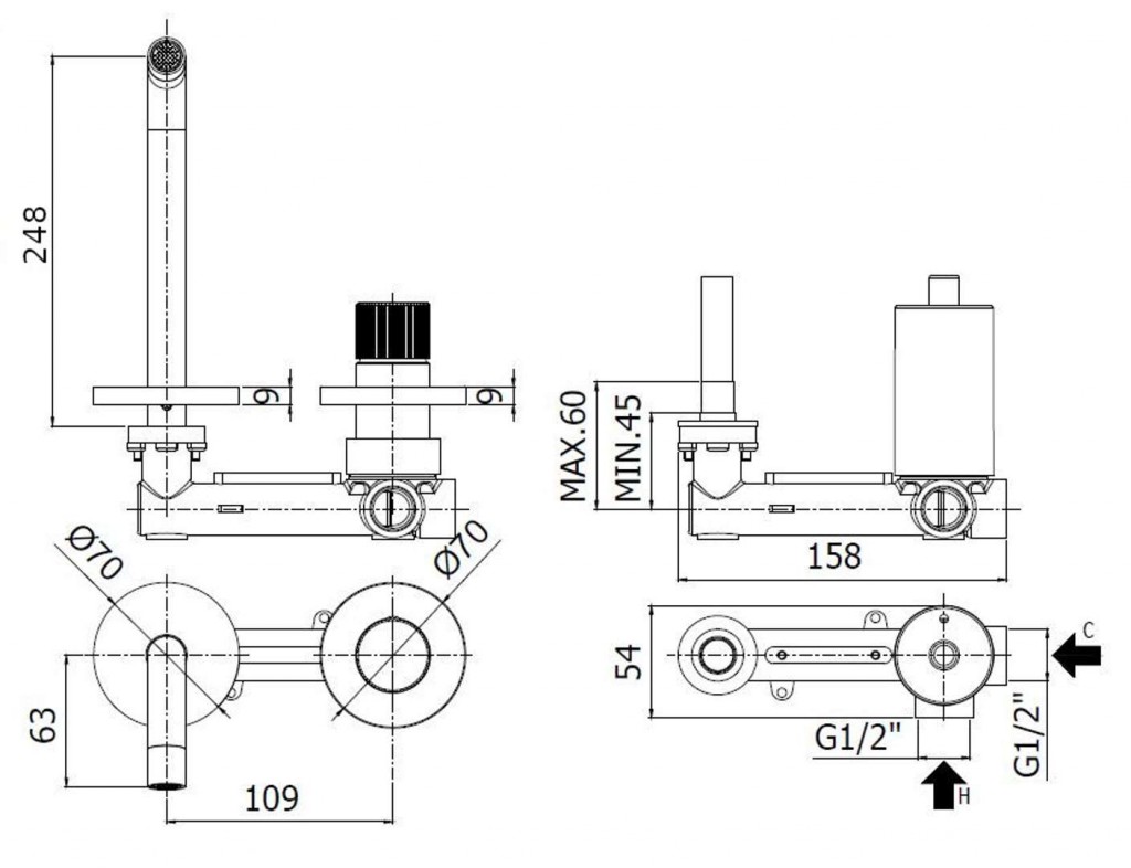 - dĺžka výtoku 248 mm