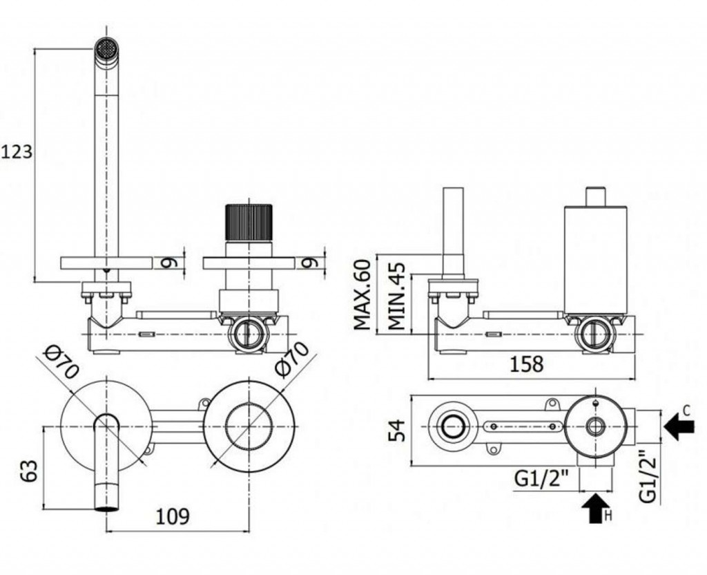 - dĺžka výtoku 123 mm
