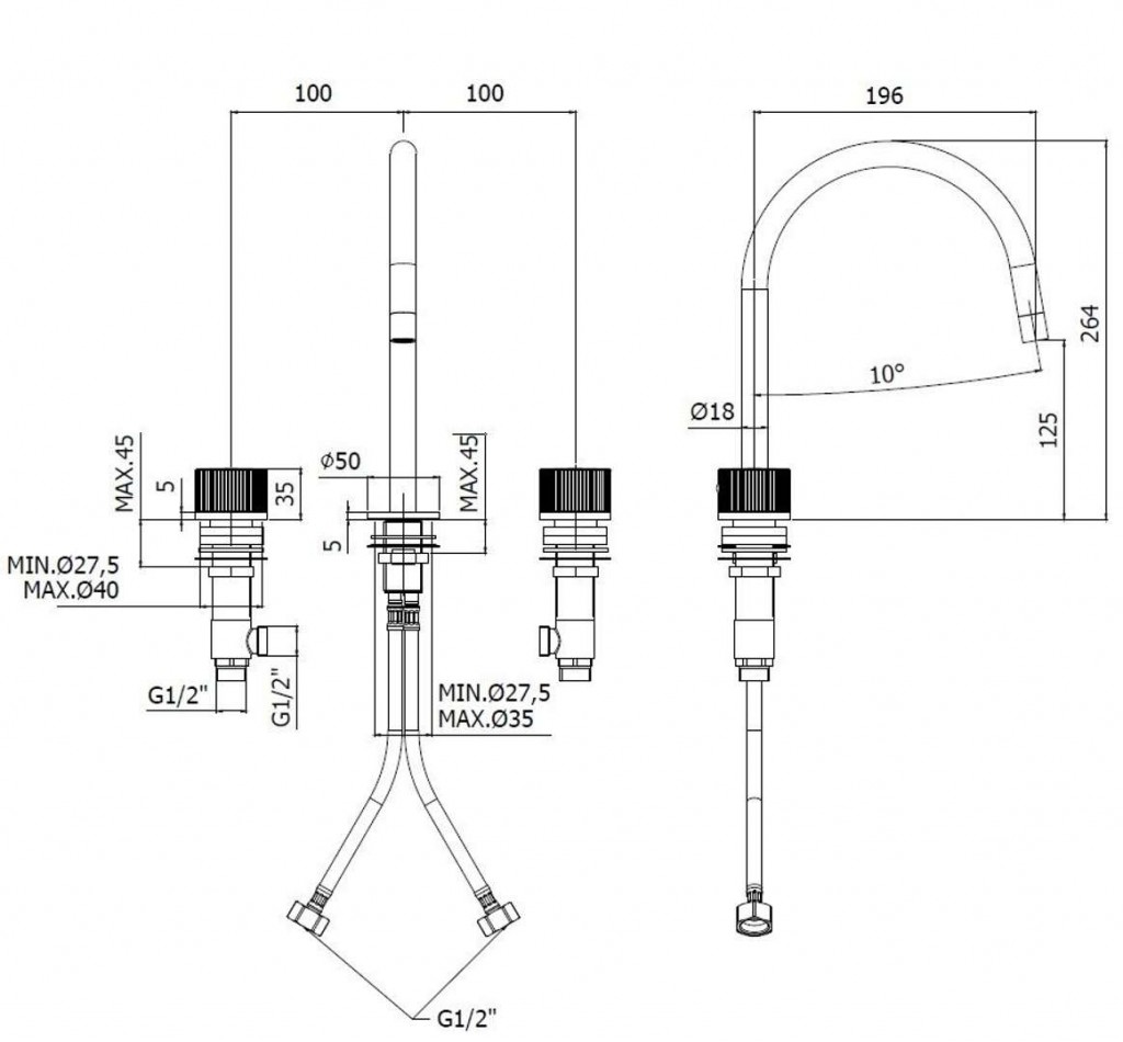 - 2 nerezové hadice s pripojením G 1/2"