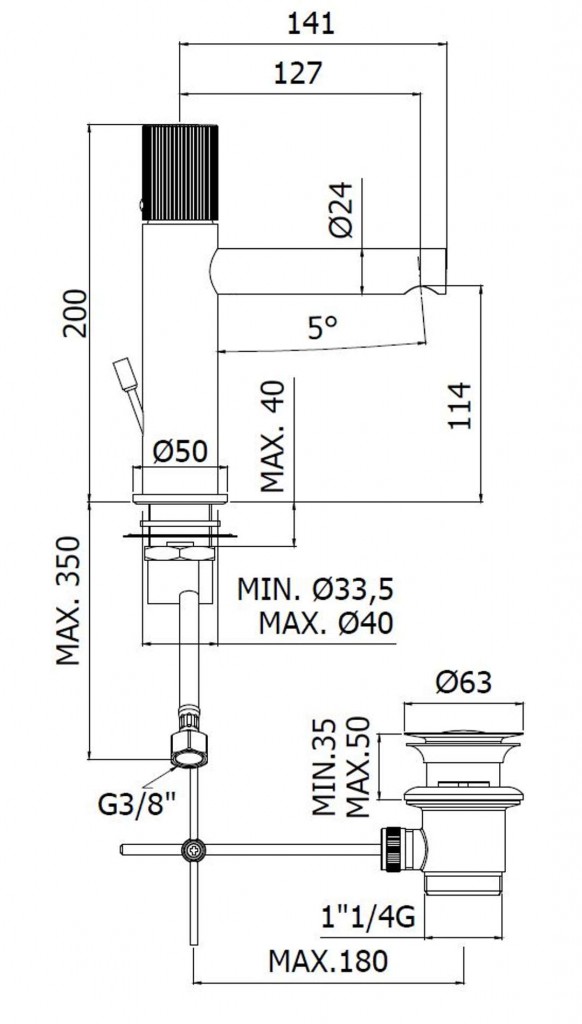 - dĺžka výtoku 127 mm