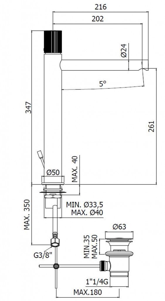 - dĺžka výtoku 202 mm