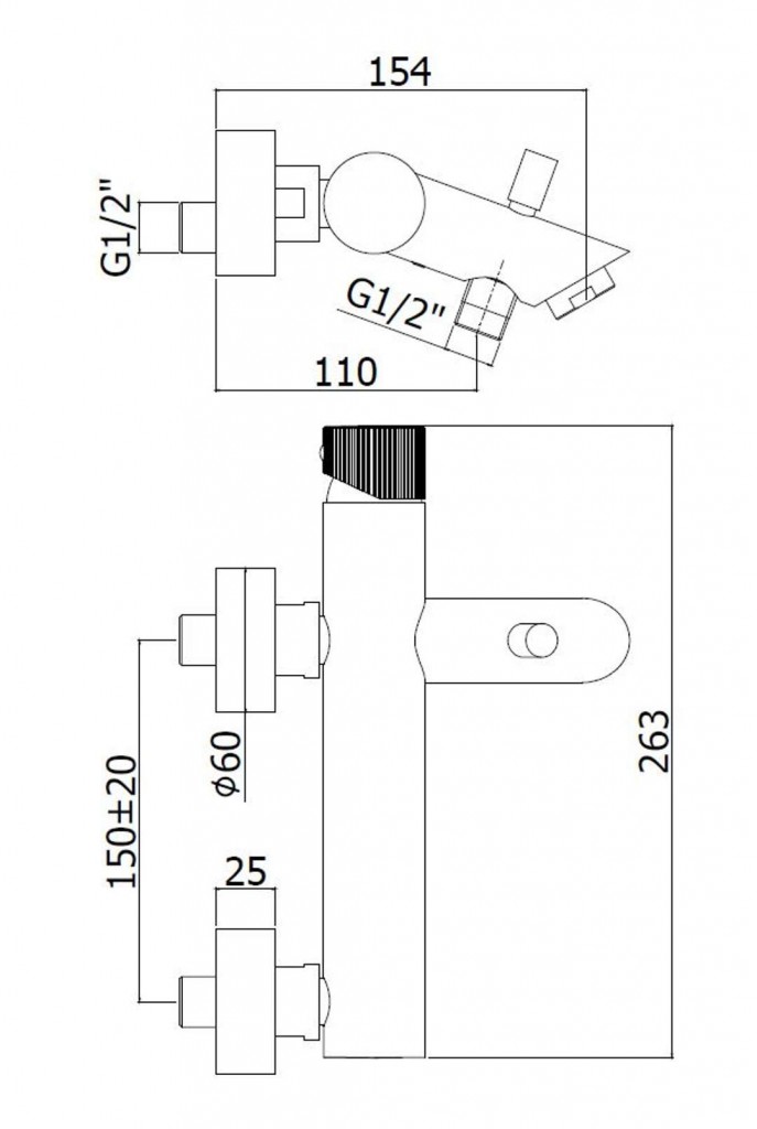 Vaňová nástenná batéria, bez príslušenstva