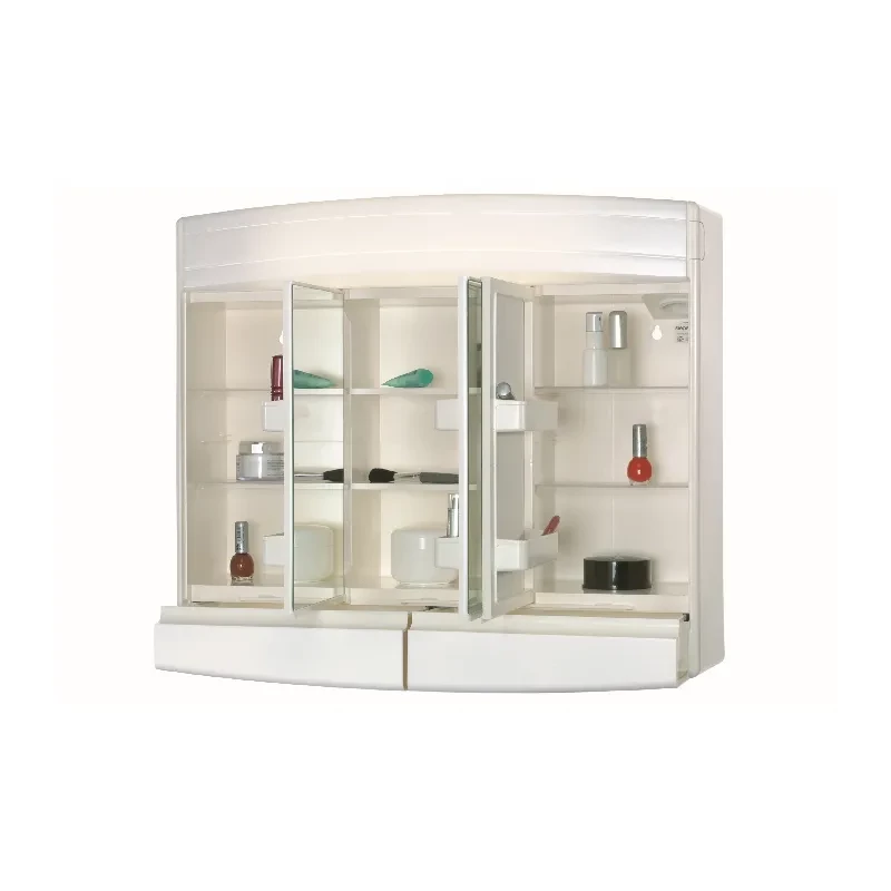 Vybavenie: 3 krištáľové sklenené zrkadlové dvere, nastaviteľné poličky, bezpečnostné zásuvka, 2 zásuvky