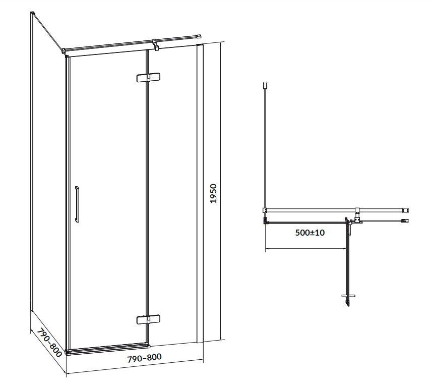 CERSANIT - JOTA rohový sprchovací kút - (80x80X195) priehľadné sklo - čierny, PRAVÝ (S160-008)