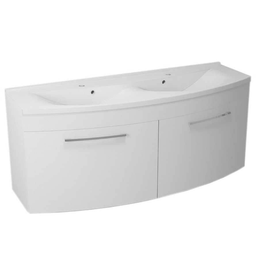 Kúpeľňový nábytok Julie zjemňuje línie hrán ľúbivým zaoblením čelných plôch umývadlových skriniek. Výsledkom je kompaktný dizajn umocnený lesklým lakom. K dispozícii sú umývadlové skrinky s dvierkami alebo v prevedení so zásuvkami. V našej ponuke nájdete umývadlá z liateho mramoru, vrátane praktického dvojumývadlá, ku ktorým sú tieto skrinky vhodné