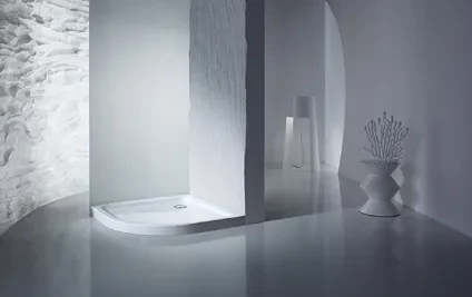 farba: biela, vonkajší tvar: štvrťkruhový (radius 55 cm), odtok: O 9 cm, záruka 30 rokov