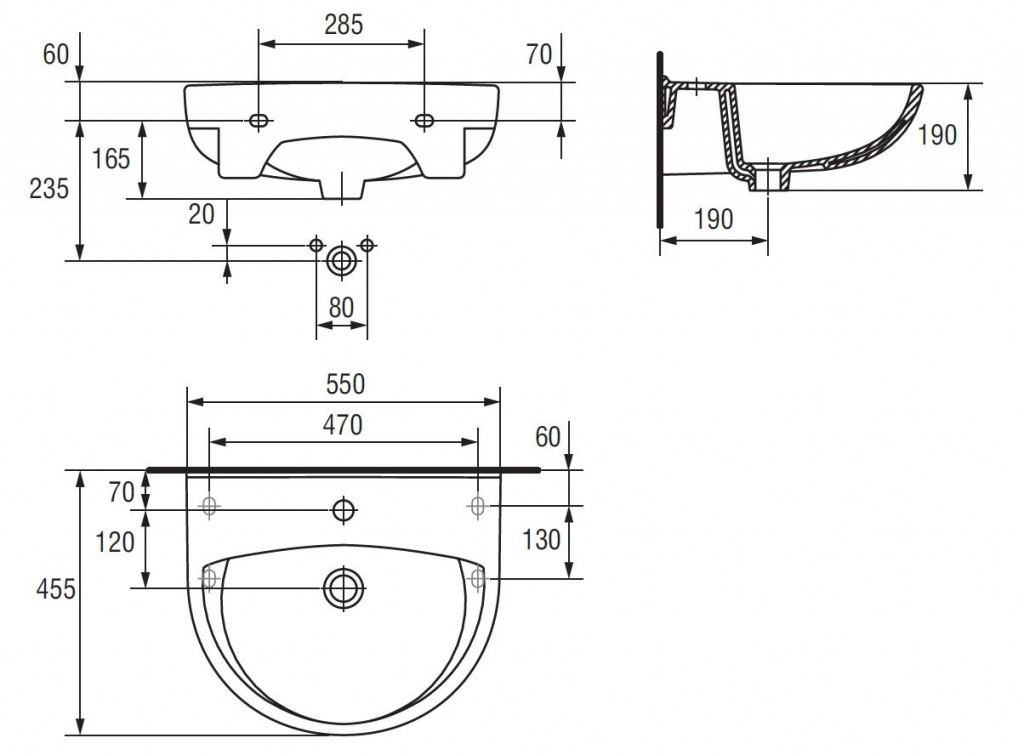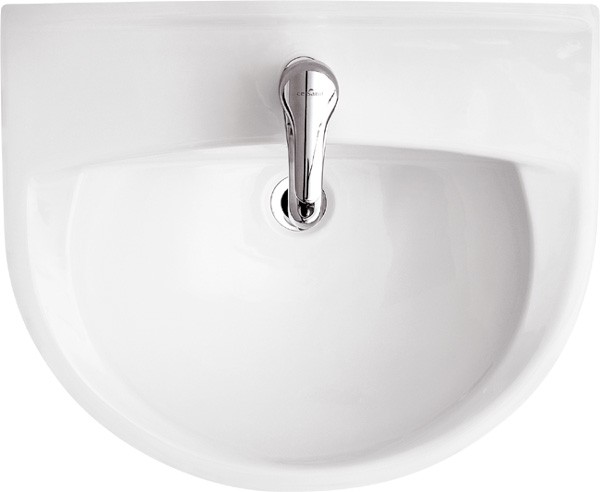 Z ávěsné umývadlo PRESIDENT s otvorom pre batériu a prepadom / bez dekoratívneho krúžku na prepad /. Možno inštalovať s ozdobným sifónom, s polostĺpom a stĺpom.