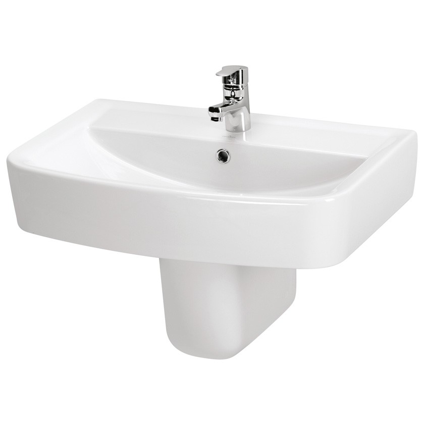 Závěsné umyvadlo PURE s aktivní složkou Silver Protect, s otvorem pro baterii a přepadem je možno instalovat s polosloupem, sloupem nebo skříňkou série PURE. Umyvadlo tohoto typu může být upevněno ke stěně jen s chromovým sifonem.