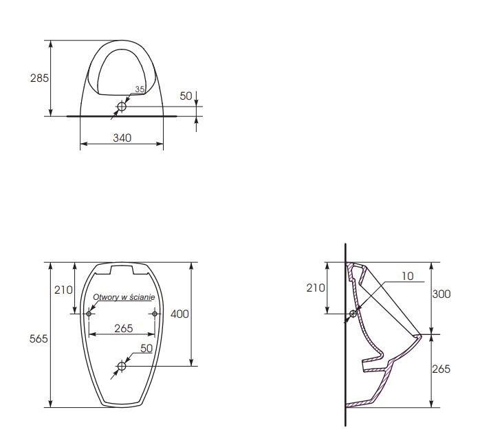 Pisoár APOLLO A101 s horným prívodom vody a horizontálnym odpadom. Vnútorné glazúrovaní zaručuje hygienickú stálosť a jednoduchú údržbu.
