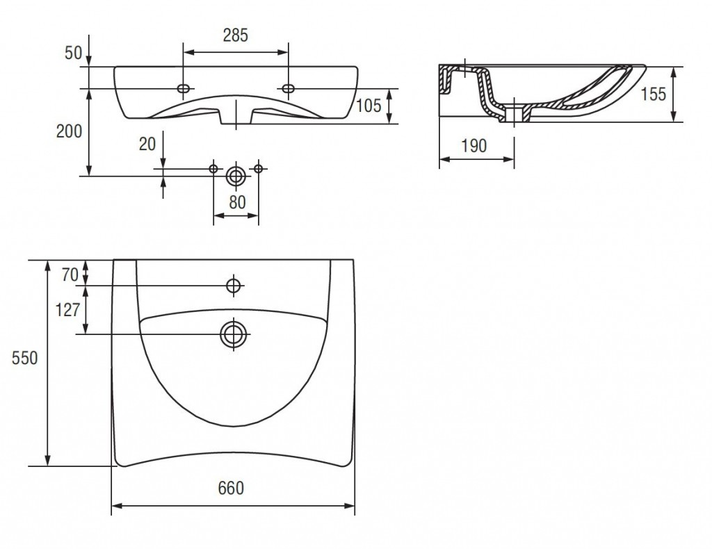 Umývadlo Etiuda s otvorom pre batériu a prepadom. Umývadlo je určené pre telesne postihnutých. Odporúčaná montáž s konštrukciou pod umývadlo (K97-072).