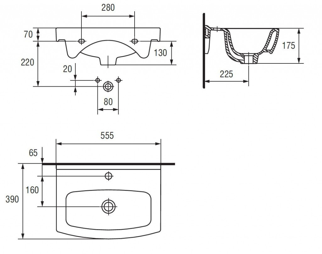Nábytkové umývadlo Cersania NEW 55 s prepadom a otvorom na batériu. Jed možné istalovat so skrinkou z radu BIANCO, FRIDA, LIMA, OLIVIA, Melara alebo inštalovať k stene s chrómovým sifónom.