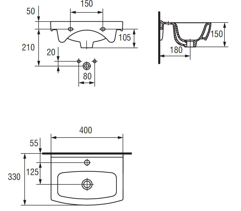 Nábytkové umývadlo Cersania NEW 40 s prepadom a otvorom na batériu, bielej farby. Je MONZA inštalovať so skrinkou z radu BIANCO, OLIVIA, Melara alebo inštalovať k stene s chrómovým sifónom. Umývadlo je vhodné do malých kúpeľní alebo WC.
