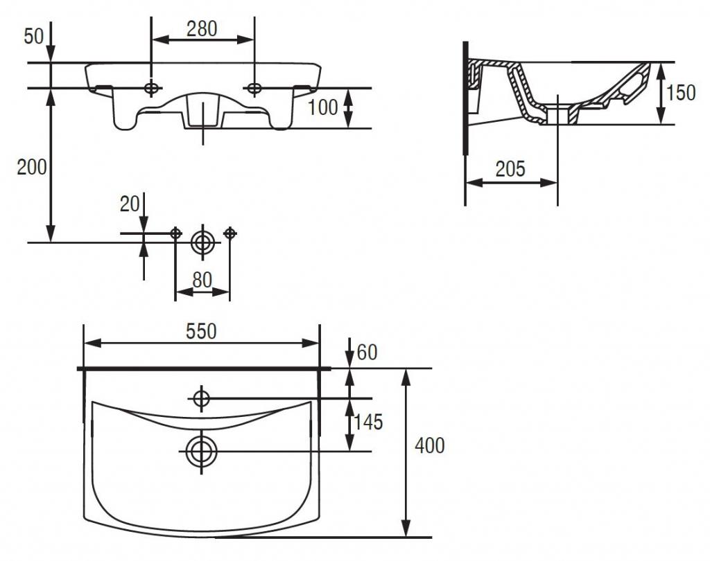 Nábytkové závesné umývadlo CARINA s prepadom as otvorom pre batériu. Možno inštalovať s ozdobným sifónom, s polostĺpom alebo so skrinkou z radu MOCCA, DAHLIA, BAMAKO, MESTA.