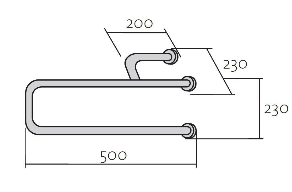 Umývadlové madlo nástenné / nepohyblivé / 550 mm ľavej. Maximálne zaťaženie 120 Kg.