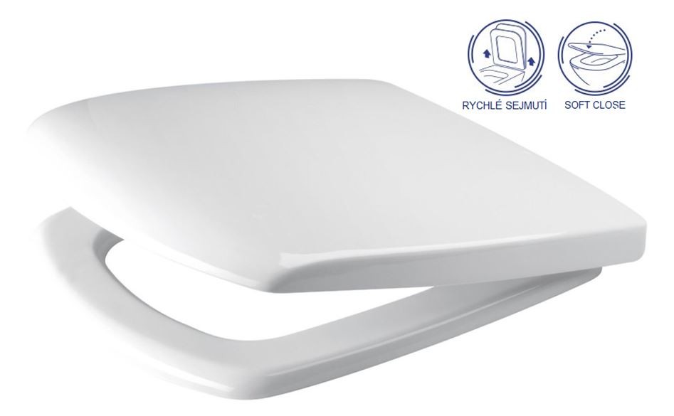 Duroplast antibakteriálne WC sedátko CARINA so systémom pomalého sklápania SOFT CLOSE, s jednoduchým odobratím a upevnením sedátka EASY OFF.