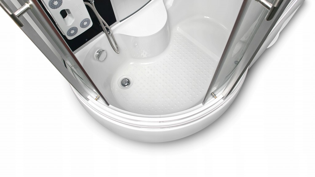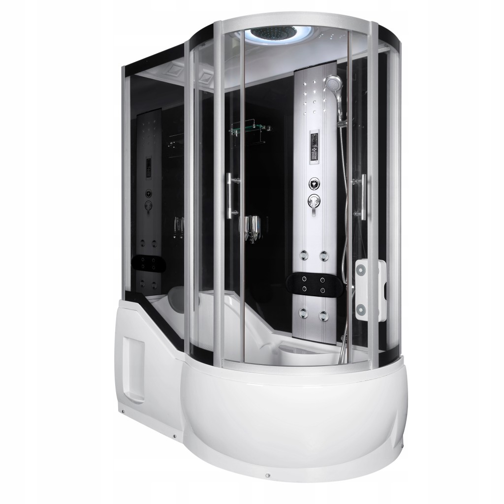 Sprchový box je vybavený ovládacím panelom s možnosťou pripojenia telefónu, rádia, ventilátora, LED osvetlenia, masážneho prístroja na nohy, sklenené police s madlom.