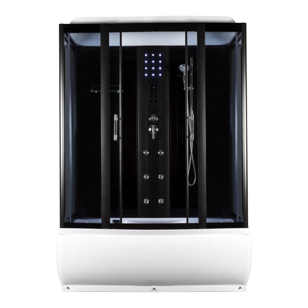 Sprchový box je vybavený dotykovým ovládacím panelom, ventilátorom, LED a halogénovým osvetlením, sklenenou policou, rádiom a Bluetooth.