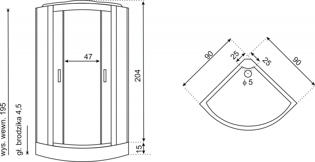 - Rozmer kabíny: 90 x 90 x 218,5 cm