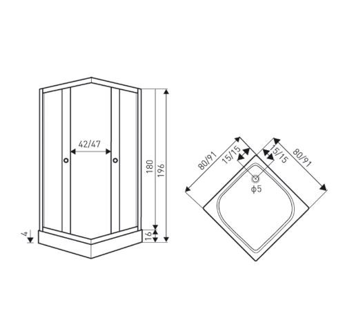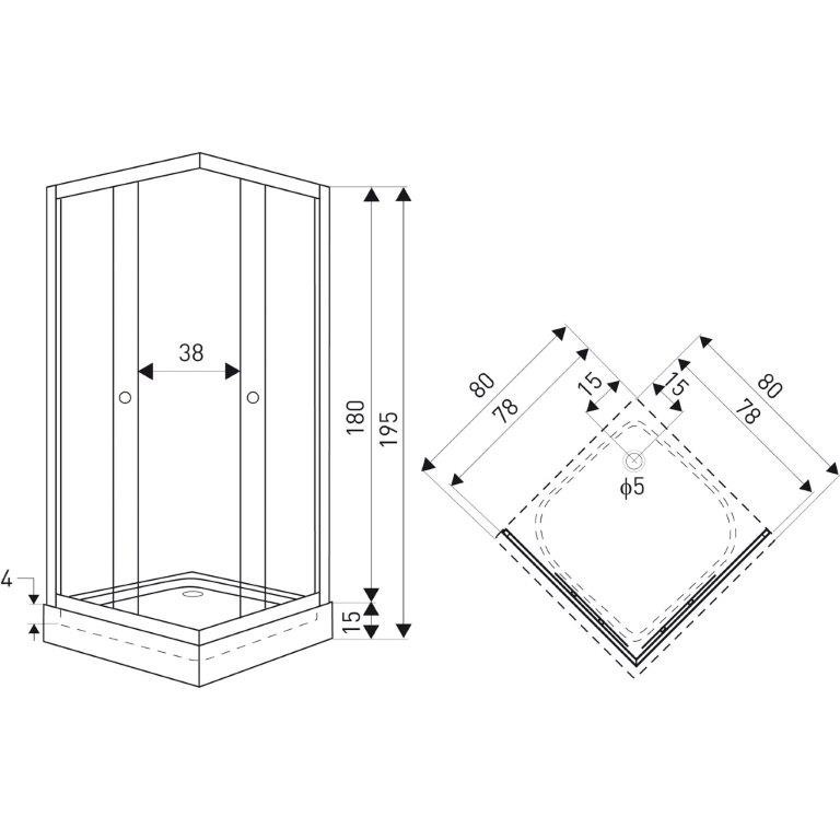 Bezpečnostné tvrdené sklo s hrúbkou 4 mm je priehľadné. Kút je dodávaný s bielou akrylátovou sprchovou vaničkou , ktorá je odolná a ľahko sa čistí.