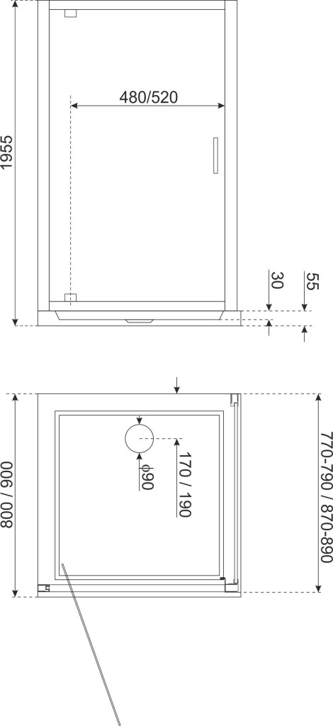 - Rozmery - 87-90 x 87-90 x 190 cm (nastaviteľná šírka až o 3 cm pre jednoduchšiu inštaláciu).