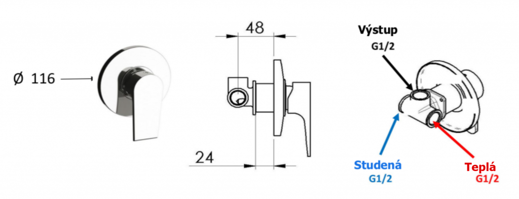 Kombinácia valcového tela s hranatou hubicou u umývadlové batérie