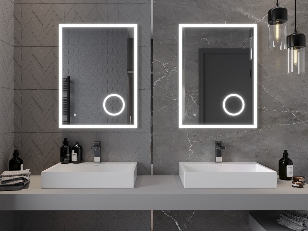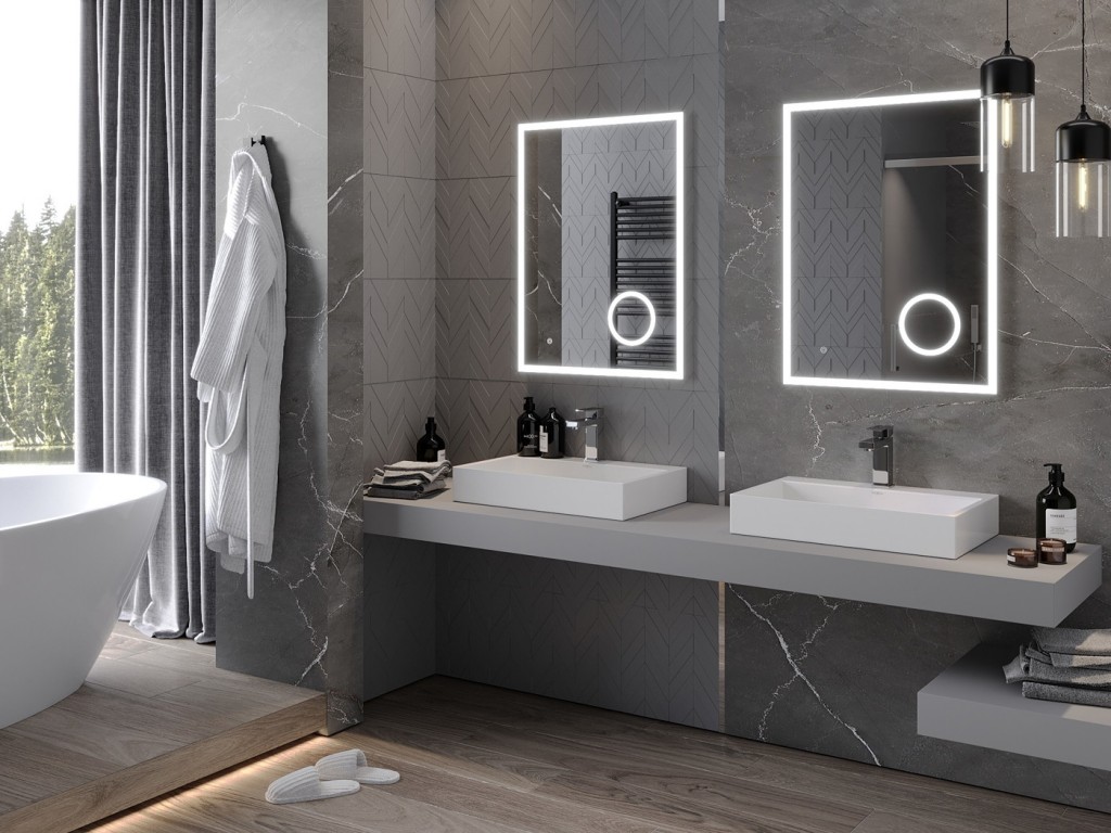 Moderné obdĺžnikové zrkadlo kolekcie KALA je vybavené LED podsvietením, ktoré sa ľahko ovláda pomocou dotykového tlačidla priamo na ploche zrkadla . Zrkadlo je vybavené vyhrievacou podložkou ANTI-CAR , ktorá eliminuje zahmlenie skla.
