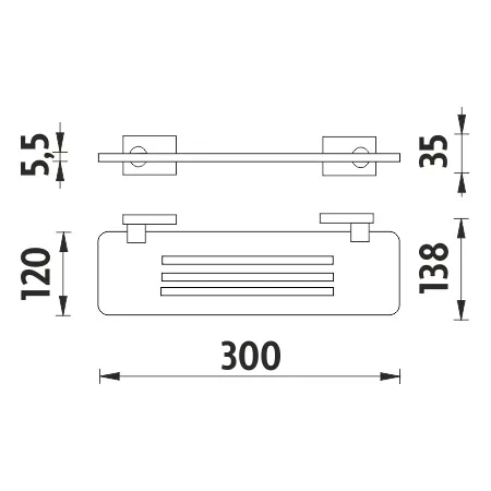 NIMCO Keira Police IXI chróm KE X330-26 Polica Plexiglass s frézovanými otvormi. Úchyty mosadz / chróm. Dĺžka 30 cm.