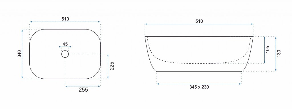 Rozmery umývadla na dosku Claudia Zoe