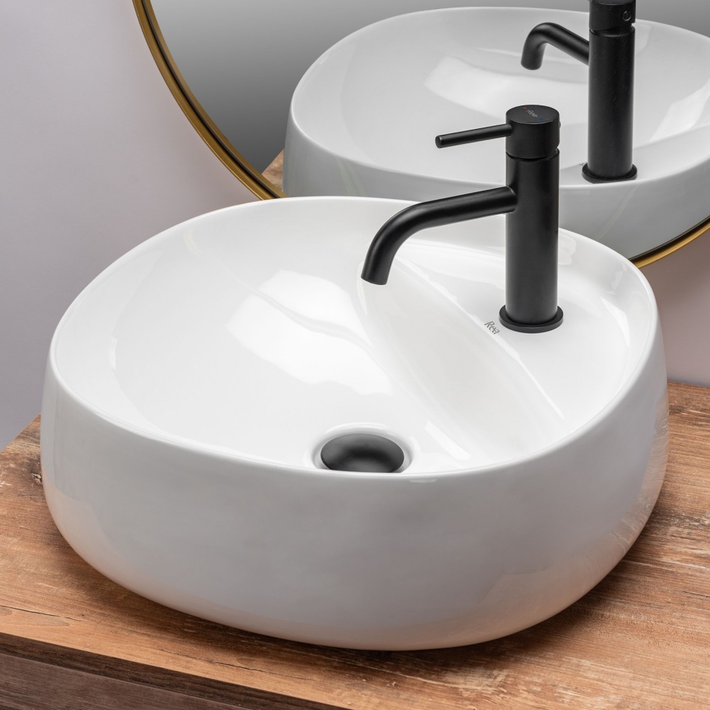 Krásne a moderné umývadlo na dosku Rea Pola, ktoré sa vyznačuje mimoriadnou funkčnosťou je vyrobené zo 100% vysoko kvalitné sanitárnej keramiky, ktorá zaručuje trvanlivosť po mnoho rokov používania. Umývadlo je veľmi odolné voči nečistotám a poškriabaniu a ďalšou výhodou je jednoduché všeobecné čistenie vďaka neobvyklej forme. Jednoduchý tvar dokonale vyplní akýkoľvek priestor kúpeľne pri zachovaní dokonalého vzhľadu a estetiky interiéru. Umývadlo sa perfektne hodí do moderných kúpeľní aj do kúpeľní v klasickom a retro štýlu.