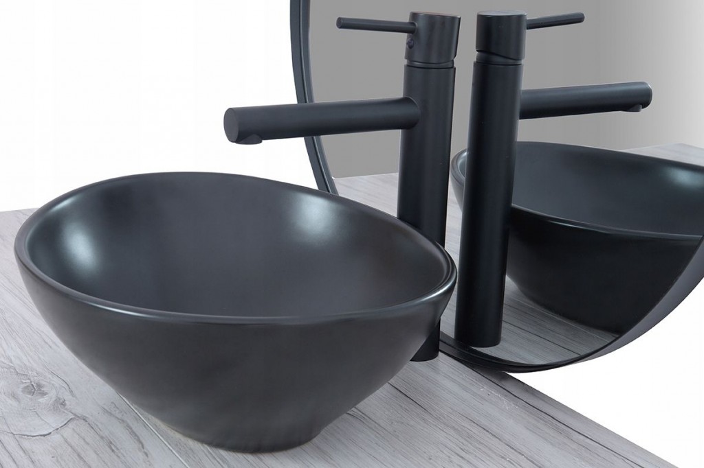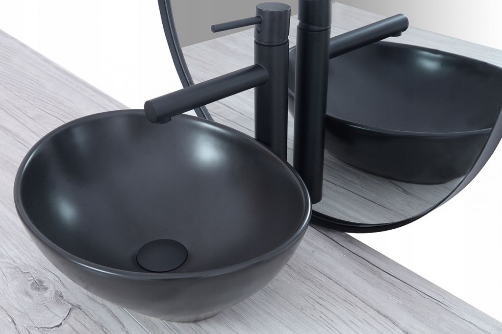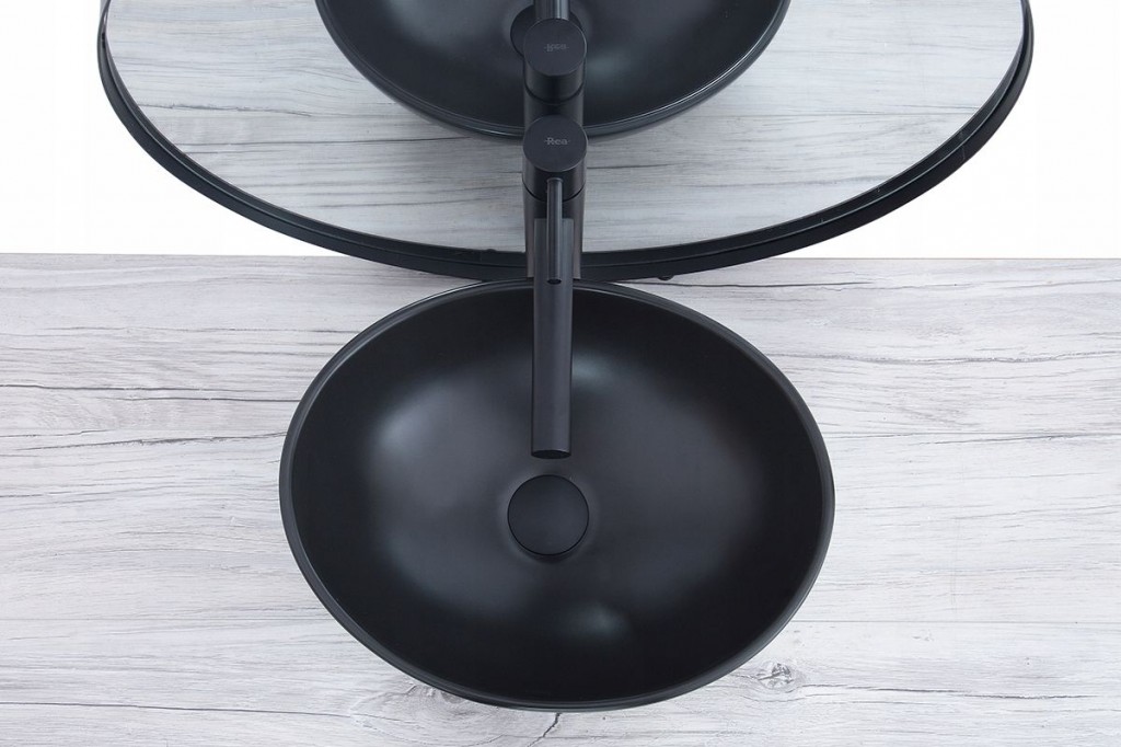 Nový model umývadlá na dosku Rea Sofia je v našej ponuke veľmi obľúbený. Umývadlo je vyrobené z najkvalitnejšej sanitárnej keramiky, ktorá je veľmi odolná a ľahko sa čistí. Umývadlo je čierno matné, čo prispieva k úžasnému efektu v každej kúpeľni a je určené na montáž na dosku alebo skrinku. Bude dokonale ladiť s akoukoľvek farbou podstavca, na ktorú bude umývadlo inštalované.