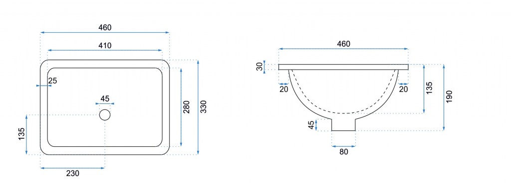 Zápustné keramické umývadlo Rea Adela prispôsobené na montáž pod dosku. Sada obsahuje kovovú montážnu sadu, vďaka ktorej môžete ľahko a rýchlo umývadlo namontovať. K vyrezávanie nepotrebujete šablónu, jednoducho drez otočte a nakreslite jeho tvar na dosku. Potom by ste mali orezať a zmenšiť otvor podľa okrajov umývadla.