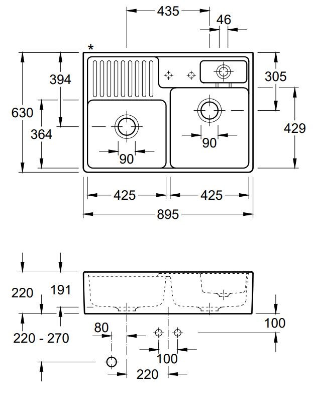 Keramický drez Double-bowl sink Ebony modulový 895 x 630 x 220 bez excentra (632391S5)