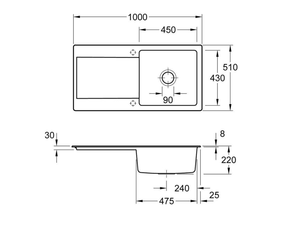 - rozmery drezu: 1000 x 510 mm