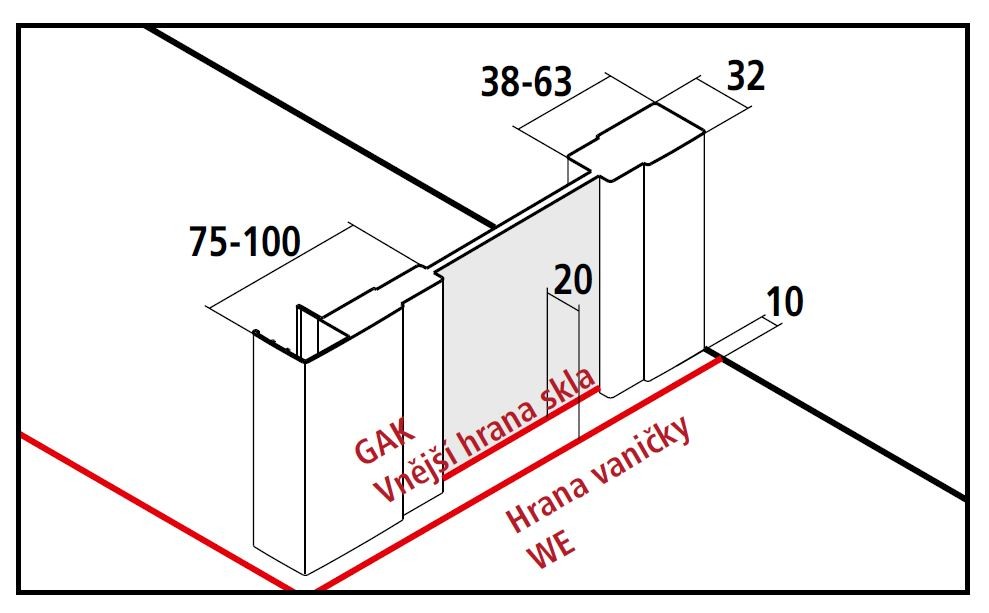 - Čiastočne rámová bočná stena (nie je možné inštalovať ako Walk-in).