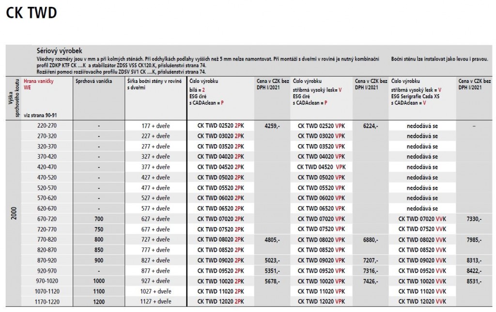 | Inštalácia | pro kombinaci se všemi Cada XS dveřmi v rohu, v rovině a pro U-kabinu (kromě CK 1KR/L a CK 1NR/L |