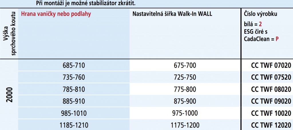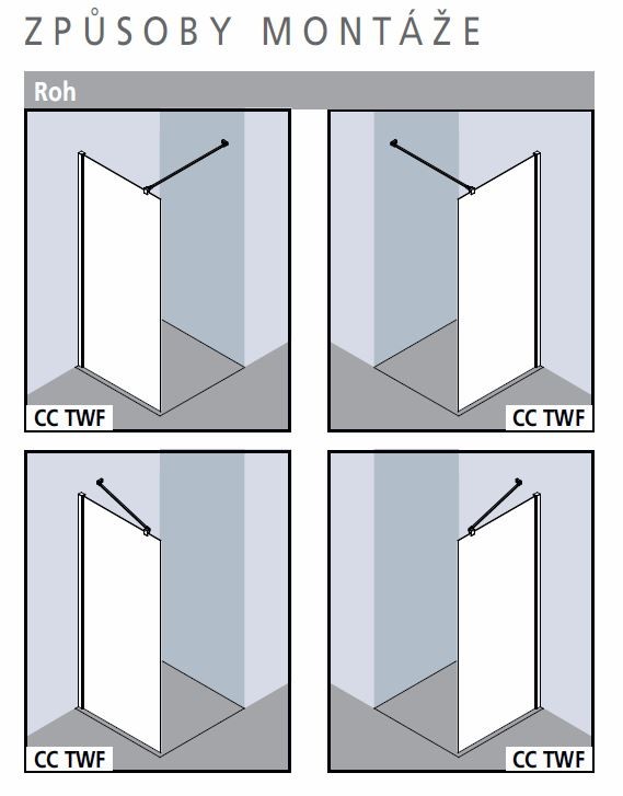 | Druh | Částečně rámová Walk-in-boční stěna s uchycením ke zdi. |
