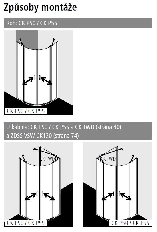 | Inštalácia | možno kombinovat i s pevnou boční stěnou CK TWD |