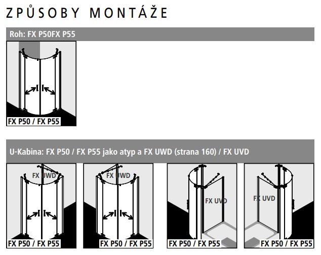- Sprchové kúty Kermi sú určené na montáž na vaničku resp. na podlahu. Pri inom spôsobe inštalácie je potrebné zabezpečiť porovnateľné inštalačné podmienky (utesnenie napojenie na dlažbu, spád, ...).