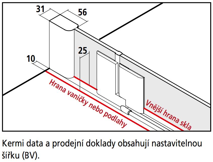 - Sprchové kúty Kermi sú určené na montáž na vaničku resp. na podlahu. Pri inom spôsobe inštalácie je potrebné zabezpečiť porovnateľné inštalačné podmienky (utesnenie napojenie na dlažbu, spád, ...).
