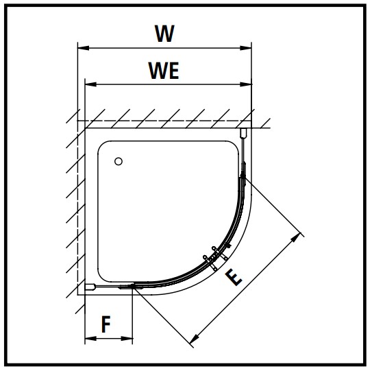 | Charakter | Částečně rámový dvoukřídlý čtvrtkruhový sprchový kout s pevnými poli, s dveřmi otvíravými dovnitř i ven. |
